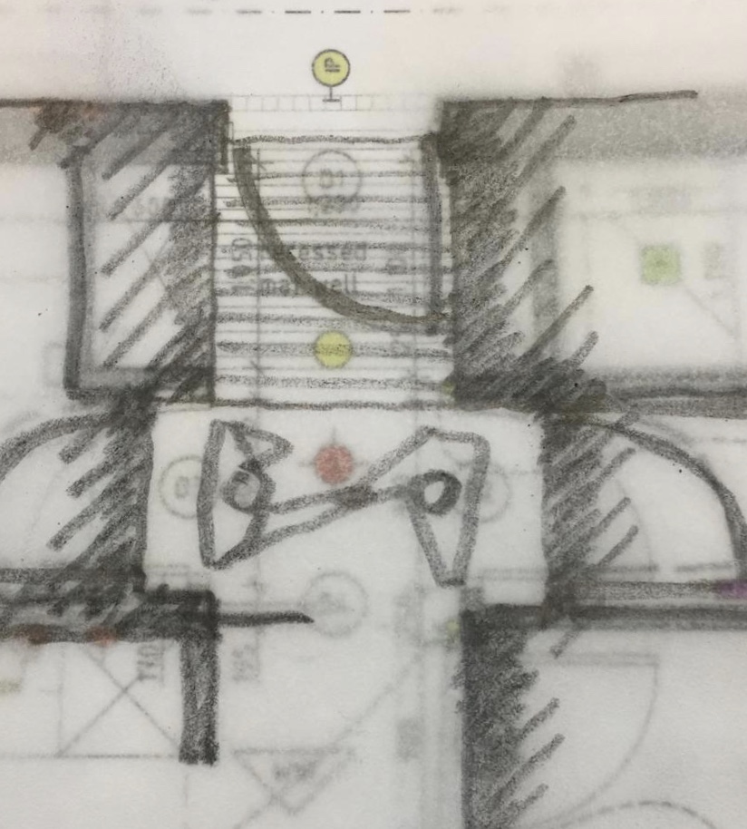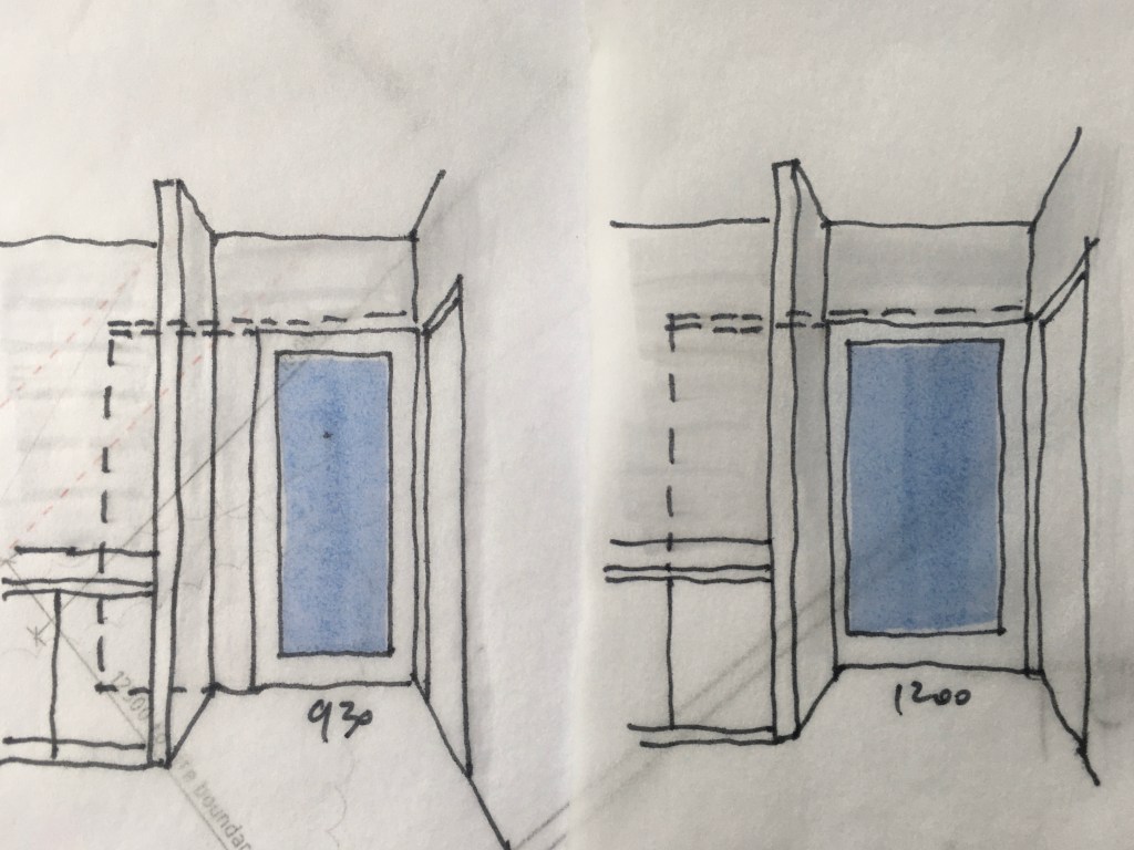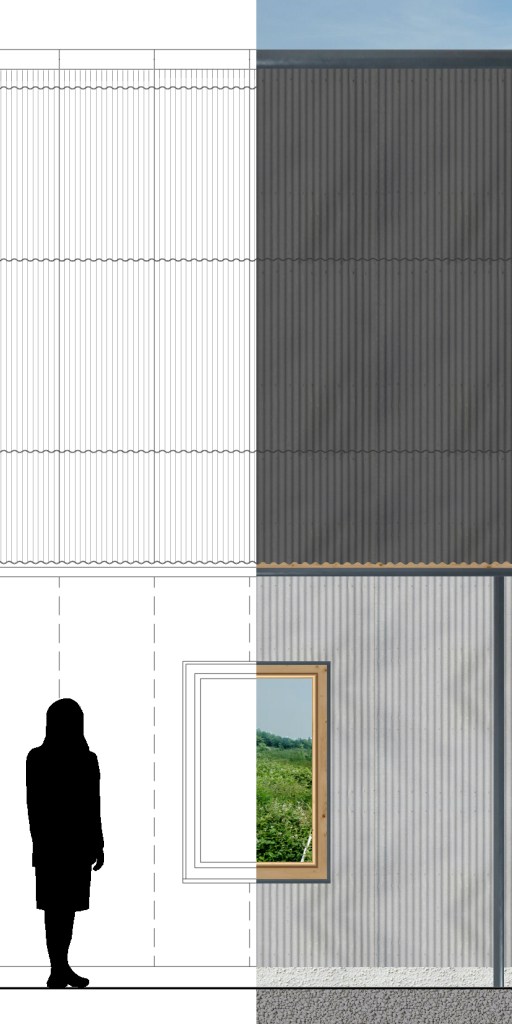The roof and walls are clad with a rain screen of corrugated steel sheeting. Its layout is a simple square plan with a small entrance hallway entered from the north, a utility to one side and bathroom opposite leading into the main south and west facing family room off which two bedrooms facing east.