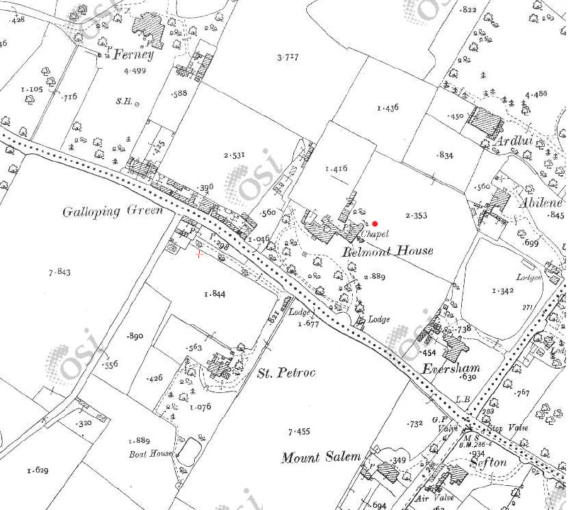 Belmont Chapel and Cloisters, located in Galloping Green, was designed in 1886 by architect G.C Ashlin esquire (FRIBA) for the Oblate Fathers of the Missionary Oblates of Mary Immaculate as a chapel extension to the Belmont House (built in 1790, demolished 1975). Today the Chapel is attached to Belmont Residential Nursing Home.