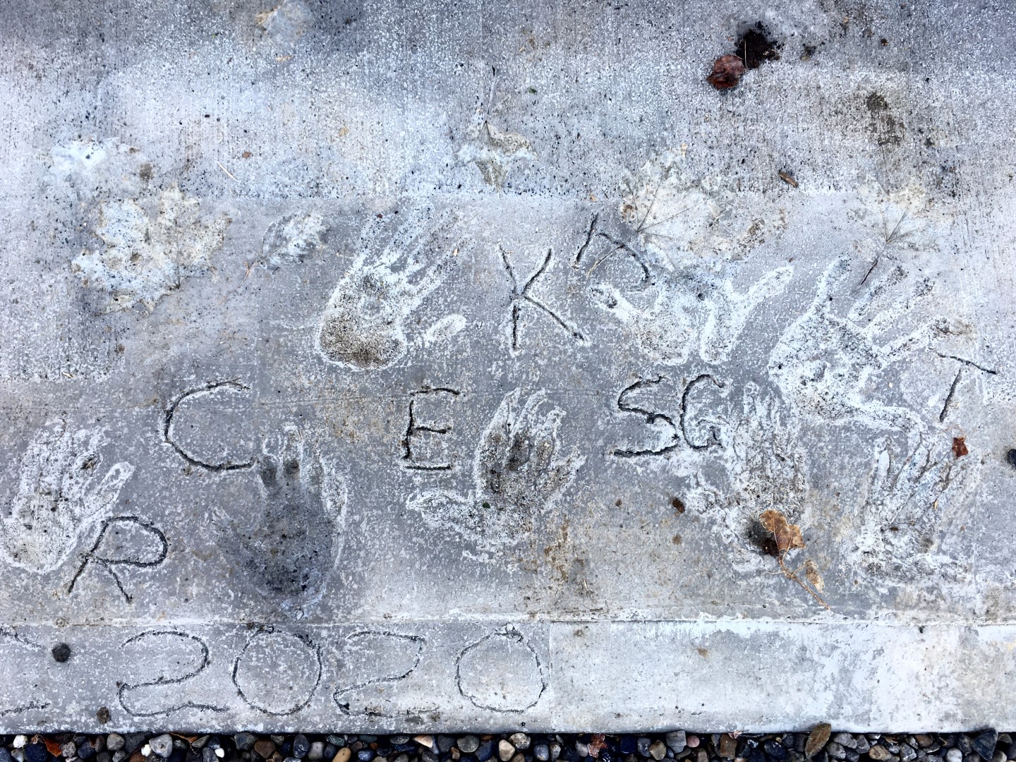 We were asked to design a small shelter in the garden of the future Creche. The shelter is 6m x3m set on a concrete base. The base was poured in the late autumn as the last of the autumn leaves fell. Scattering of leaves were impressed into the concrete. Little hands created further imprints dating the pandemic year 2020.