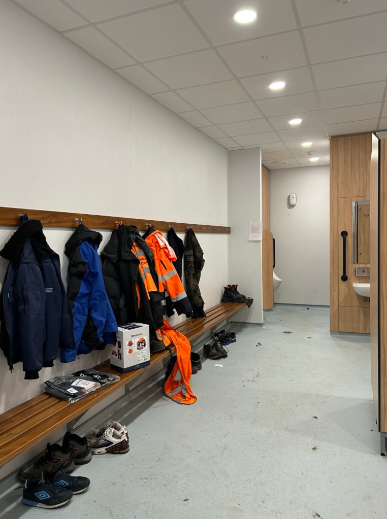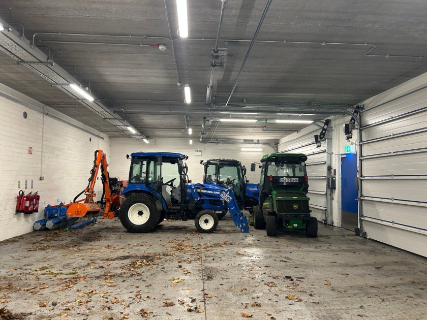 The new staff facilities include canteen, office and changing facilities. Secure storage is provided for the various machinery, equipment and vehicles along with a covered working area. EV charging points are included for the electric fleet of vehicles. The upgraded building has been built to a very high standard, is universally accessible