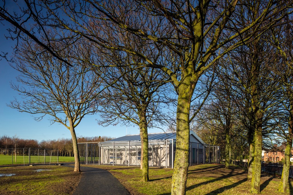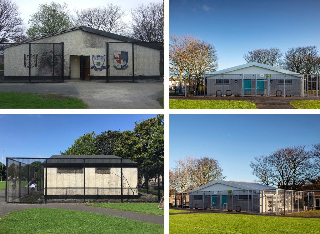 A compact refurbishment and extension project for a small football changing building on a restricted site in Markeivicz Park, Ballyfermot.