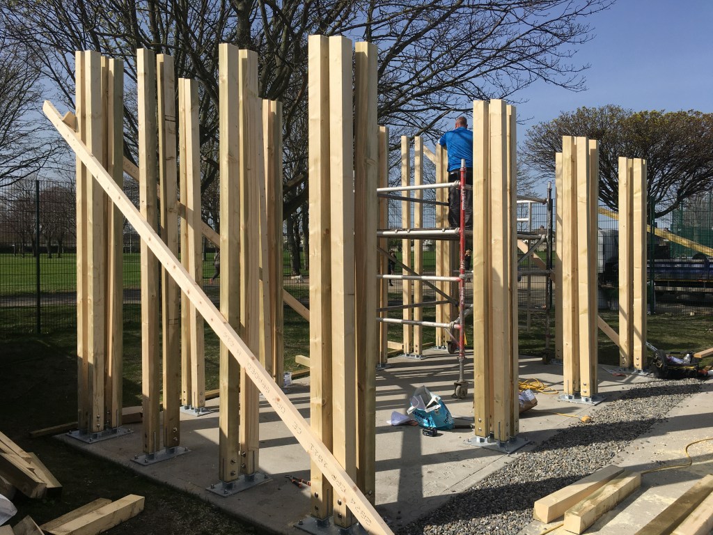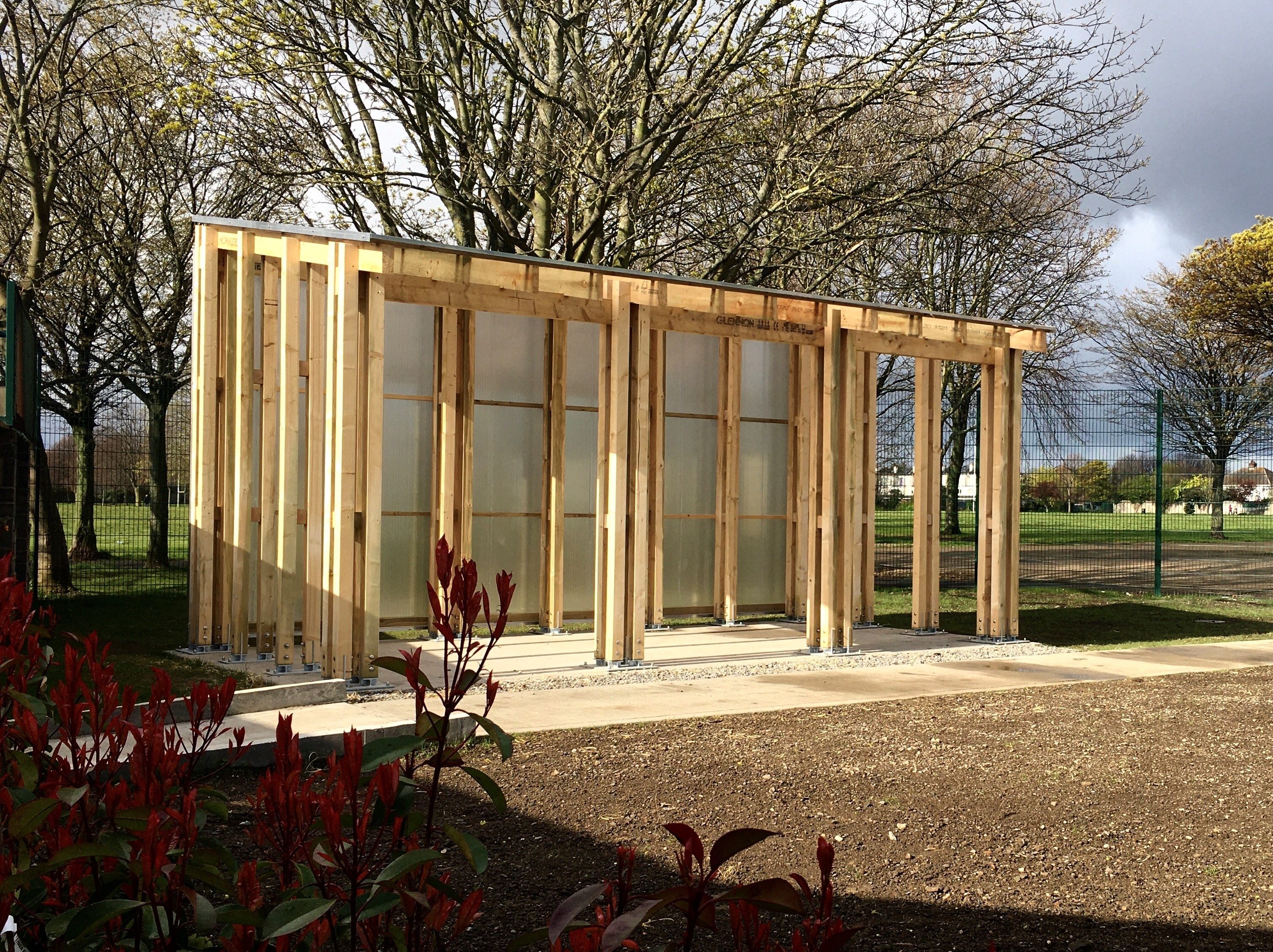 Crumlin Childcare Outdoor Shelter was completed and is now ready for its little charges – 6 months ago they left imprints of their hands alongside fallen autumn leaves. See more under Public Projects